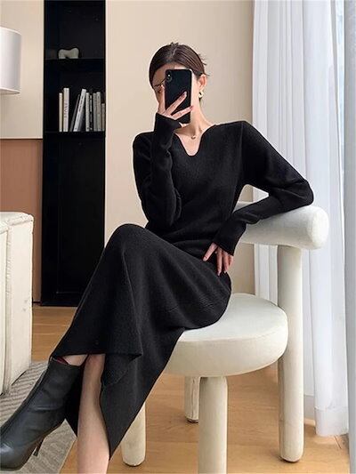 ロング丈 秋 ワンピース レディース 長袖 ロングワンピース