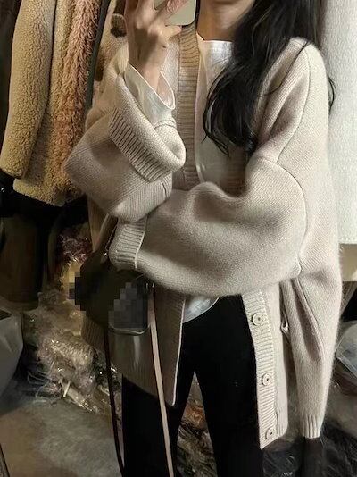 ス ニットカーディガン 無地日系 カーディガン 怠惰な風 秋冬保温 暖かい トップスベーシックニット