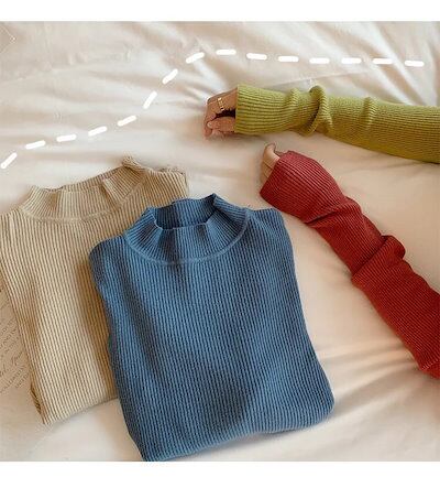 ハイネック プルオーバー トップス カットソー 長袖Tシャツ インナーセーター インナーニット ストレッチ トップス 春秋冬 シンプル