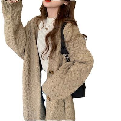 ィガン レディース 厚手 ミニ丈 ニット セーター 羽織り ボタンなし アウター トップス ケーブル編み 前開き 長袖 おしゃれ 秋冬 韓国風 可愛い 冬新作