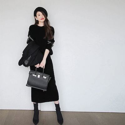 セットアップ ニット ワンピース レディース 秋冬 セットアップ 長袖 パフスリーブ ブラック きれいめ 厚手 ゆったり 大きいサイズ マタニティ 裾 切りセットアップ