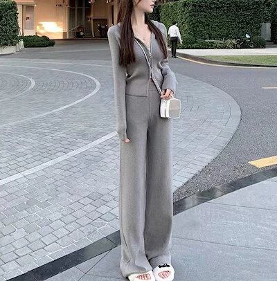 セットアップ ニット パンツ レディース 秋冬 セットアップ 長袖 パフスリーブ ブラック きれいめ