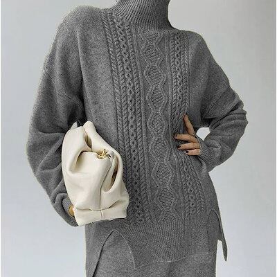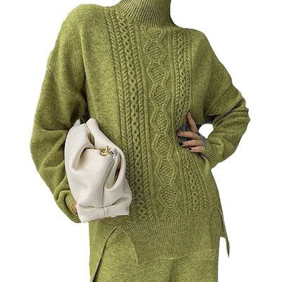 セットアップ ニット パンツ レディース 秋冬 セットアップ 長袖 パフスリーブ ブラック きれいめ 厚手 ゆったり 大きいサイズ マタニティ