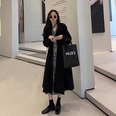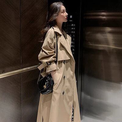 トレンチコート アウター レディース 秋冬 セミロング 英?風 気質 カーキ