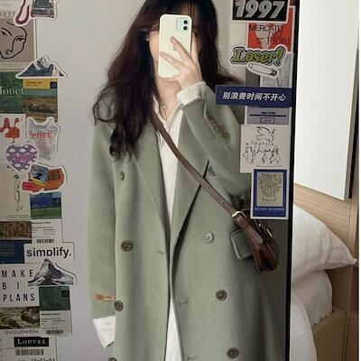 2024秋冬服 トレンチコート 韓国ファッション ラシャ ウォーム コート セミロング 無地 トップスアウター