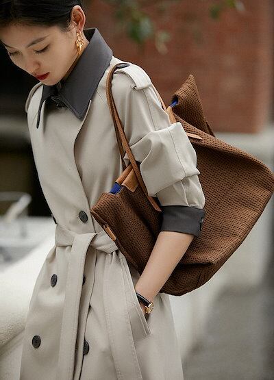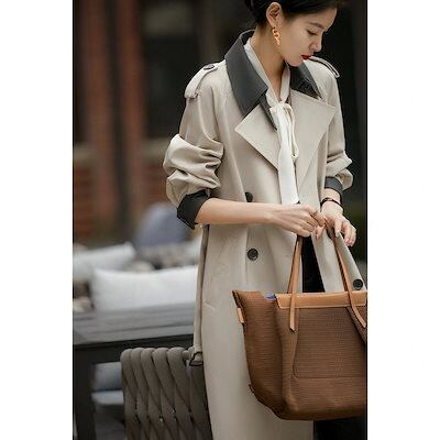英?風 秋冬 気質 カジュアル トレンチコート 韓国ファッション ニッチデザイン コントラストカラー ロング コート レディース ジャケット トップス