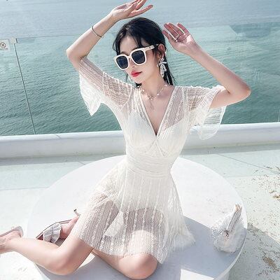 水着 競泳 連体 夏季 控えめ痩せ見え腹部カバー 2024 ニューレーススカートスタイル ワンピース 体型カバー 韓国