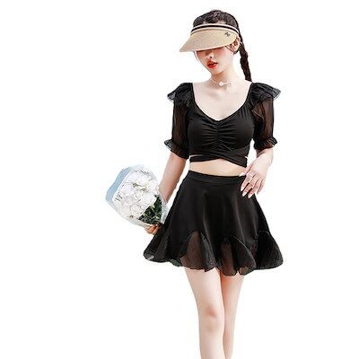 水着 競泳 別体 純色 セクシーハイウエスト痩せ見せ 純欲 バンド 温泉ワンピース 体型カバー 韓国