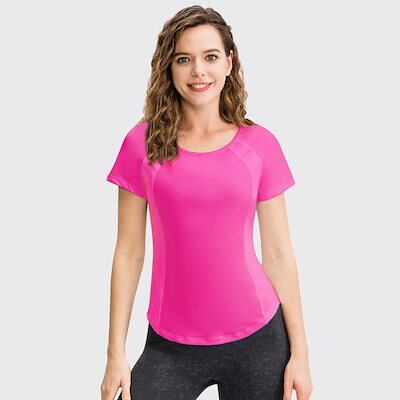 おしゃれヨガウェア お家ヨガウェア トップス タイト半袖 丸首 スポーツ Tシャツ 通気性 高弾性 速乾 ランニングフィットネスウェア レディース 韓国ファッション