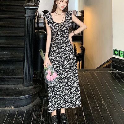 ワンピース ドレス 茶休法花柄ワンピース夏 キャミソール小飛袖新型気品ロングスカート レディース 韓国