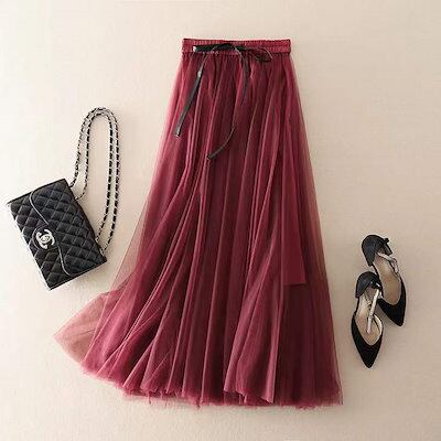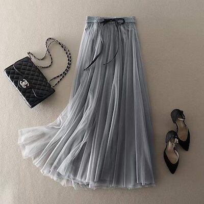 プリーツスカート 韓国 新型 ネックスドレス 半身スカート ハイウエスト 三重ネックス 大振子ミディアムポンポンスカート マキシスカート レディース