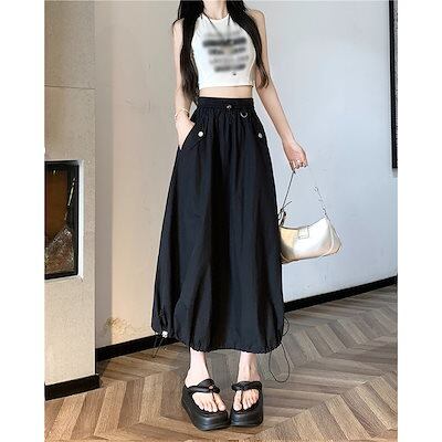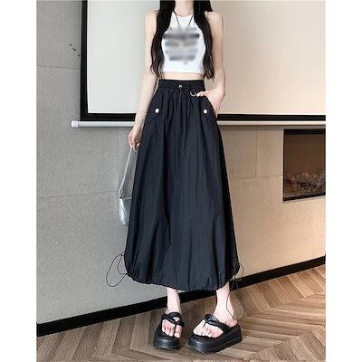 ロングスカート プリーツスカート オーバーサイズ ワークウェアハーフスカート 垂れ感ドローロープロング 夏 マキシスカート レディース 韓国