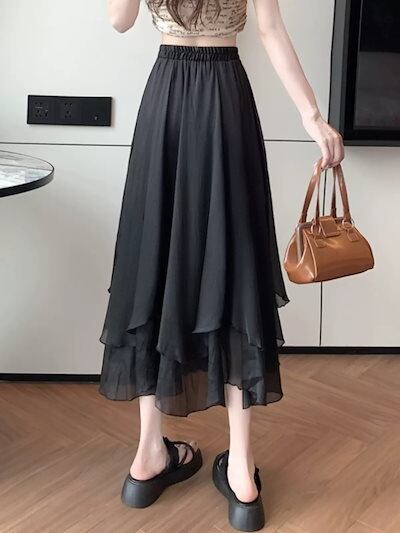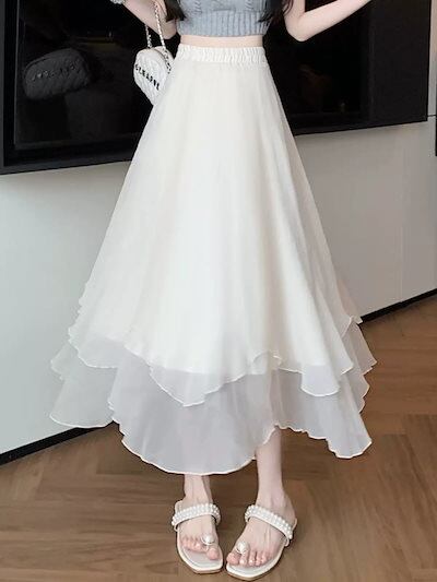 ロングスカート プリーツスカート 夏 薄手 2024新型 ハイウエスト 不規則 メッシュスカート マキシスカート レディース 韓国