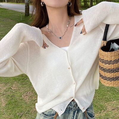 【3日以内出荷】カーディガン uvカット 夏の薄手アウターはゆったりとしたデザイン感ins空調シャツ レディース 韓国ファッション