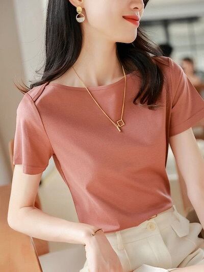 Tシャツ 気質 鎖骨 半袖 夏の新 着痩せ トップス レディース 韓国ファッション