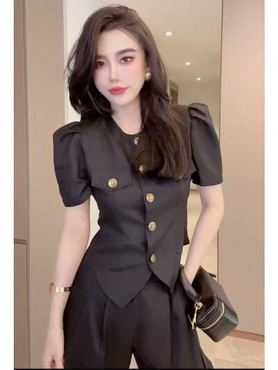 涼しく楽ちんセットアップ 2024夏の新作メタルバックルスリム泡半袖+ワイドパンツ 二点セット レディース 韓国ファッション