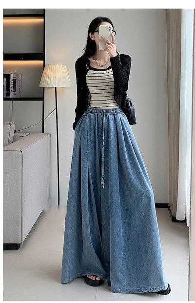 ワイドパンツ レディース 秋 冬 長め ロング丈 デニムパンツ パンツ デニム フレアパンツ ジーンズ ボトムス ゆったり 体型カバー ウエスト 大人 ウエストゴム 着?せ 美脚 おしゃれ きれいめ