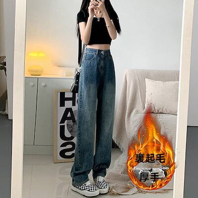 2024脚長効果! 裏起毛デニムパンツ ジーンズ レディース パンツ ワイドパンツ スキニーモップパンツ 裏起毛 韓国ファッション ズボン秋冬