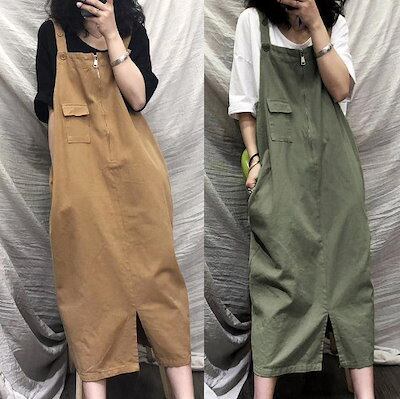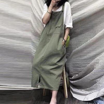 【2枚購入で 5oo円OFF!】春夏新作キャミソールワンピースレトロゆったりセミロングレディースワンピース着痩せ