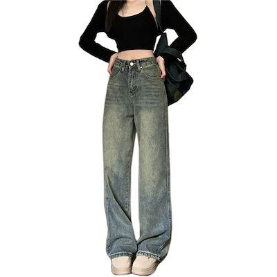 【2枚購入で 2oo円OFF! 】レトロ デニムパンツ ストレート ワイドパンツ モップパンツ ゆったり レディースロングパンツ 美脚 長ズボン カジュアル 韓国ファッション 美尻 適用着痩せ脚長効果