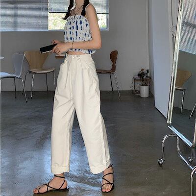 ジョガーパンツ ひんやりボトムス デニムパンツ デザイン感 ハイウエスト 着痩せ効果 接触冷感ボトムス