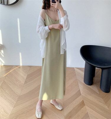 体型カバーチュニック袖なしロング ワンピース レディースロングスカートリネンワンピース Tシャツワンピース