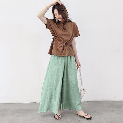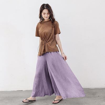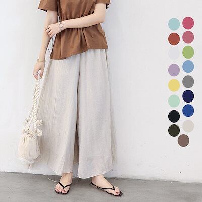 ジョガーパンツ 夏 綿麻 九分丈 ゆったり 通勤 着痩せ 無地 ウエストゴムパンツ接触冷感ボトムスワイドパンツ