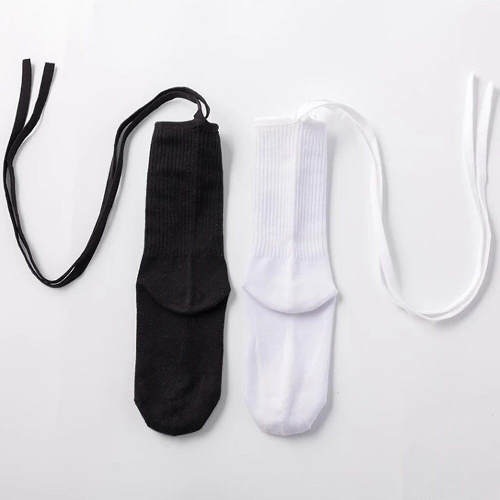 女性用和風原宿ソックス,チューブソックス,黒と白,ロリータ,セクシー,文字,大学,夏 T240926101834_02