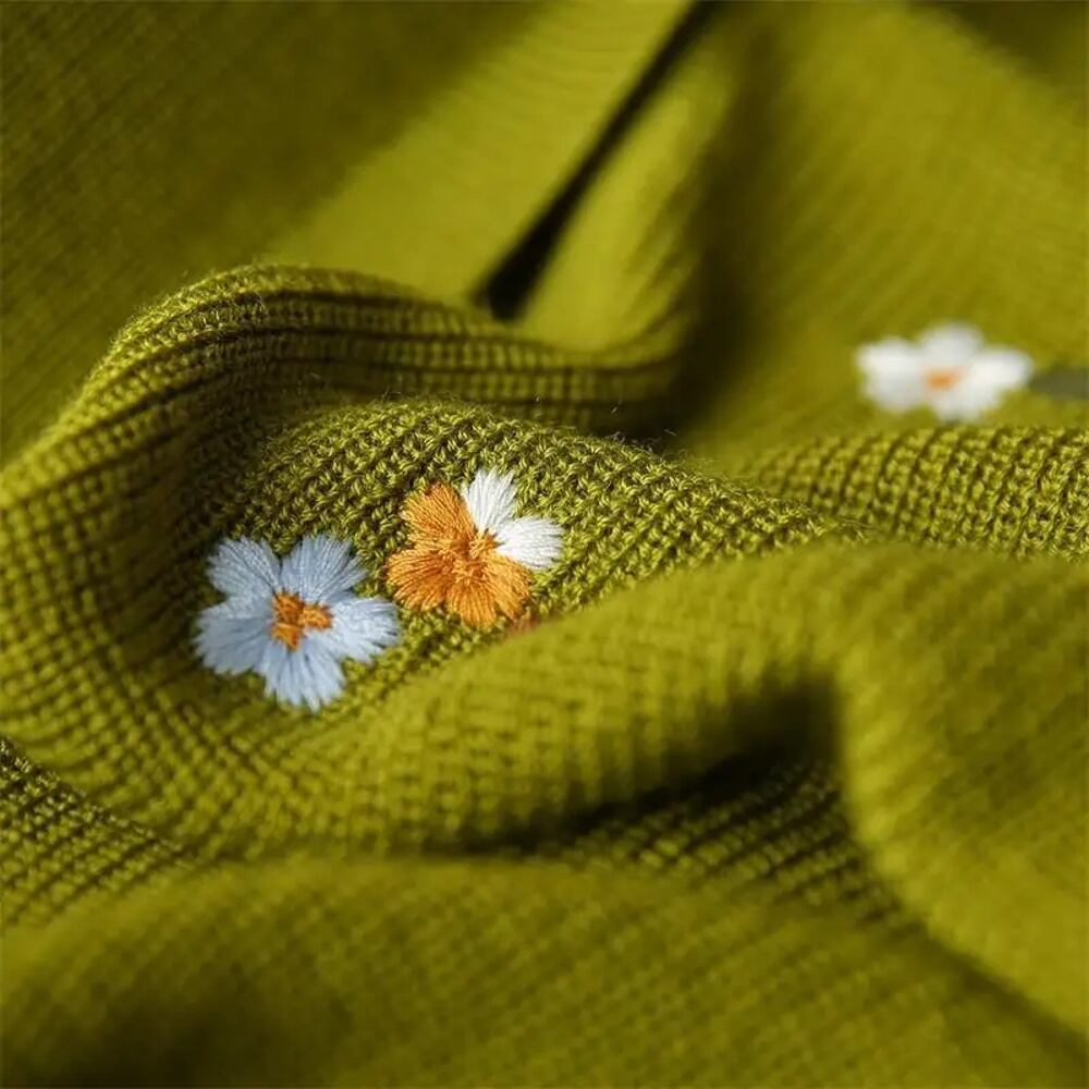 女性用Vネック刺embroideredシングルブレストスクリュースレッドルーズフィット半袖ニットトップス、ヴィンテージファッション、甘い気質、夏 T240926101839_01
