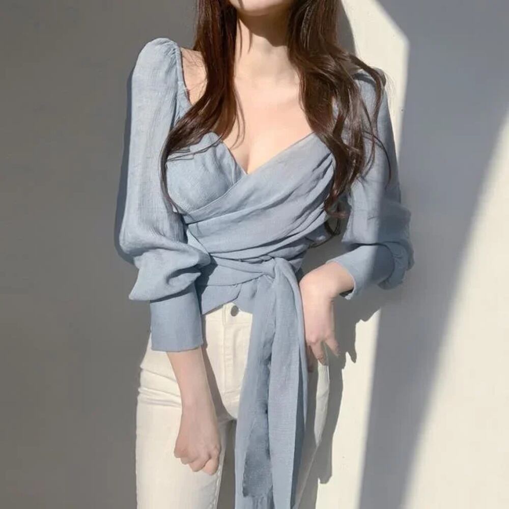 女性用長袖シャツ,Vネック,プリーツ,ハイウエスト,トップス,ブラウス,2023デザイン T240926101855_01