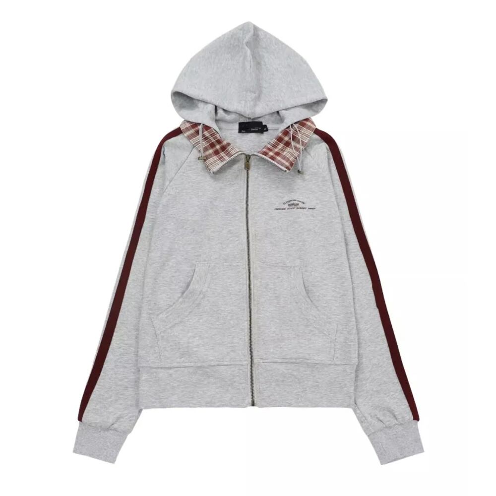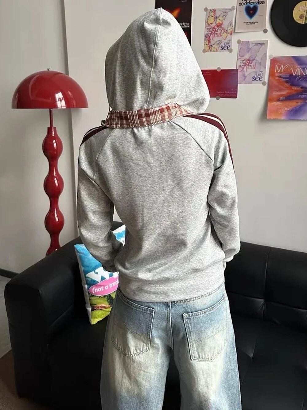 Deeptown-レディースチェック柄クロップフード付きスウェットシャツ、アメリカンヴィンテージジップアップパーカー、長袖トップ、y2kストリートウェア、原宿スタイルグランジ T240926101957_01