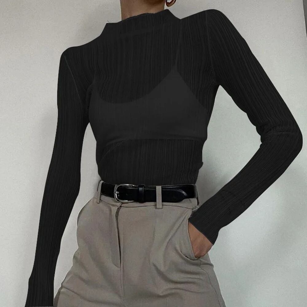 Deeptown-女性用タートルネックメッシュトップ,透明,長袖,ベーシック,無地,スリム,美的,セクシー,エレガント,秋 T240926102050_03
