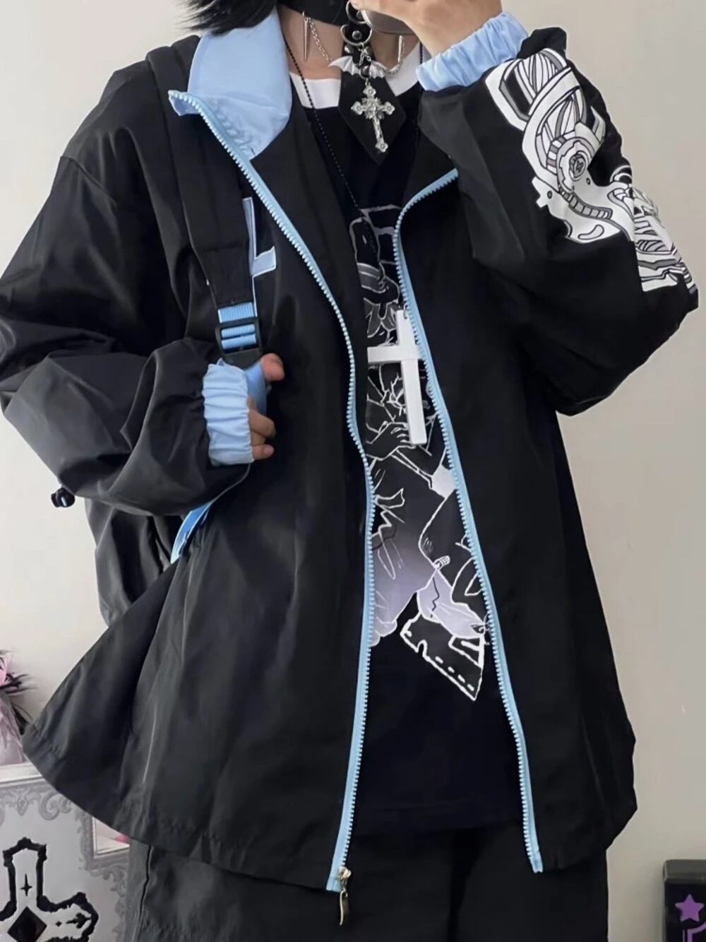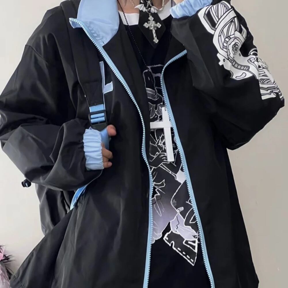 Houzhou-レディースグランジゴシックストリートウェアフーディー、日本のチャイナスタイル、ハラジュク、ヴィンテージ、パッチワーク、漫画プリント、ジッパースウェットシャツ、y2k、2024 T240926102114_02