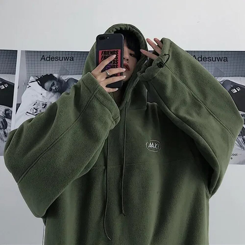 Deeptown-女性用フリーススウェットシャツ,ラージサイズ,ストリートウェア,ヴィンテージ,韓国ファッション,黒,y2kグリーン T240926102142_02