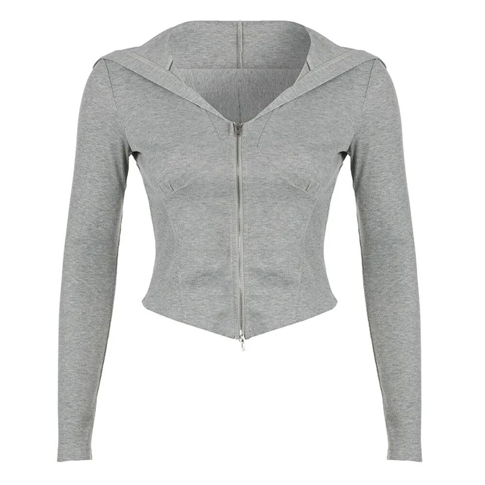 Deeptown-女性用ダブルジップアップパーカー,Vネックフード付きスウェットシャツ,ヴィンテージの薄いトップス,長袖,原宿スタイル,セクシー T240926102154_01