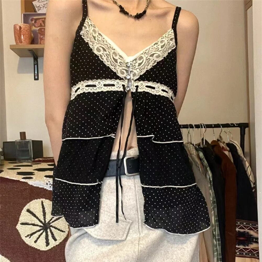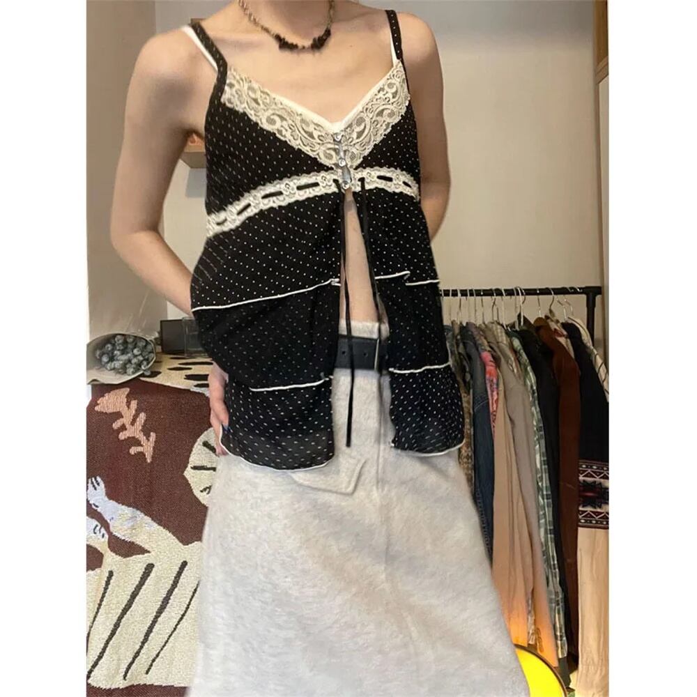 Deeptown-レディースヴィンテージブラックレースキャミ、y2kコエステティック、カワイイクロップ、タンクトップ、セクシー、日本、2000s grunge、ハラジュクファッション T240926102253_01