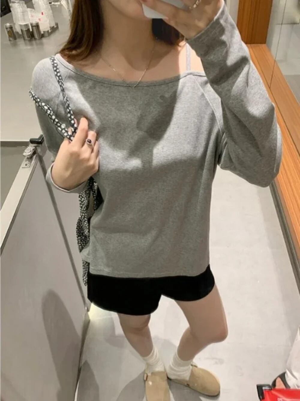 広州-女性の長袖ルーズフィットヴィンテージスウェットシャツ、韓国スタイル、カジュアルファッション、モノクロストリートウェア、エレガント、シック、2024 T240926102306_02