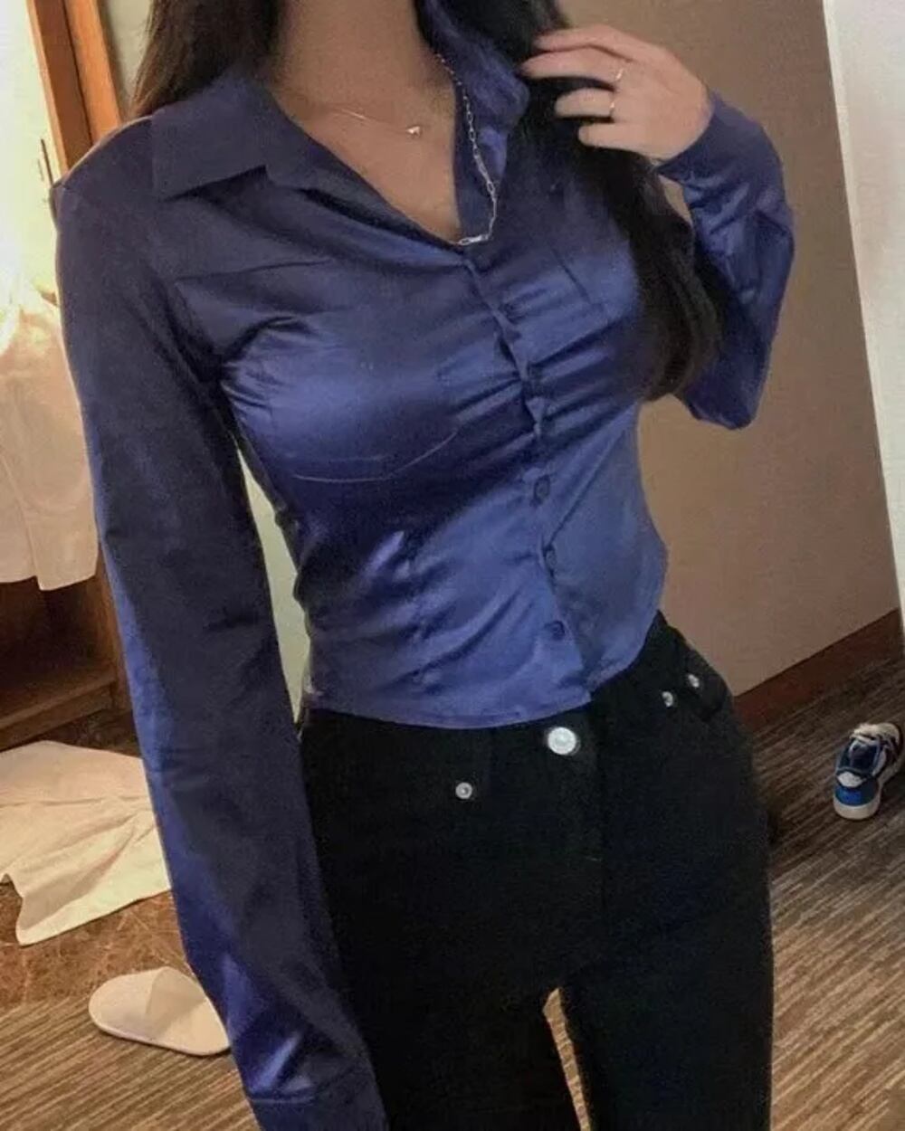 広州-女性のヴィンテージVネックモノクロスリムシャツ、エレガントなブラウス、韓国スタイル、セクシーなカジュアルなストリートウェア、オフィスレディ、2024 T240926102344_02