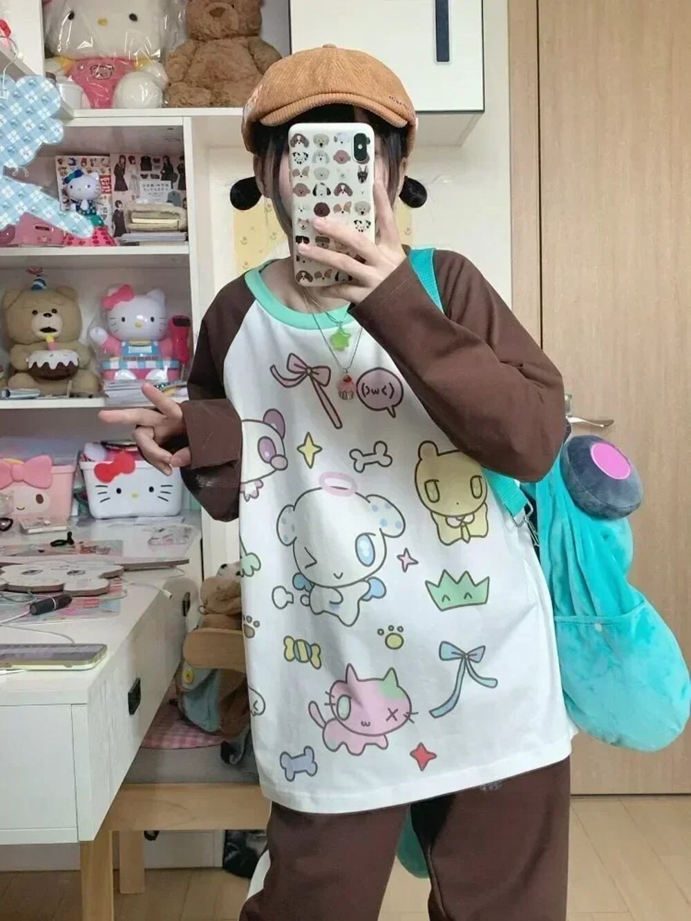 Houzhou-女性の漫画プリントパッチワークパーカー、柔らかい女の子のプルオーバー、プレッピースタイル、パッチワーク、日本のファッショナブル、y2k、秋、新しい、2023 T240926102623_01