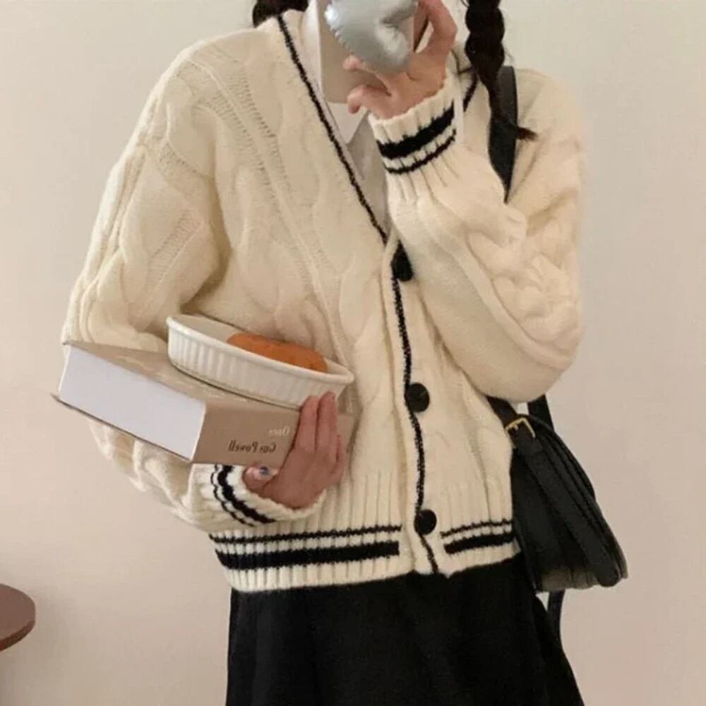 Houzhou-ヴィンテージパッチワークニットカーディガン、シングルブレストセーター、アメリカレトロ2kグラフィック刺繍、秋のストリートウェア、2024 T240926102626_02