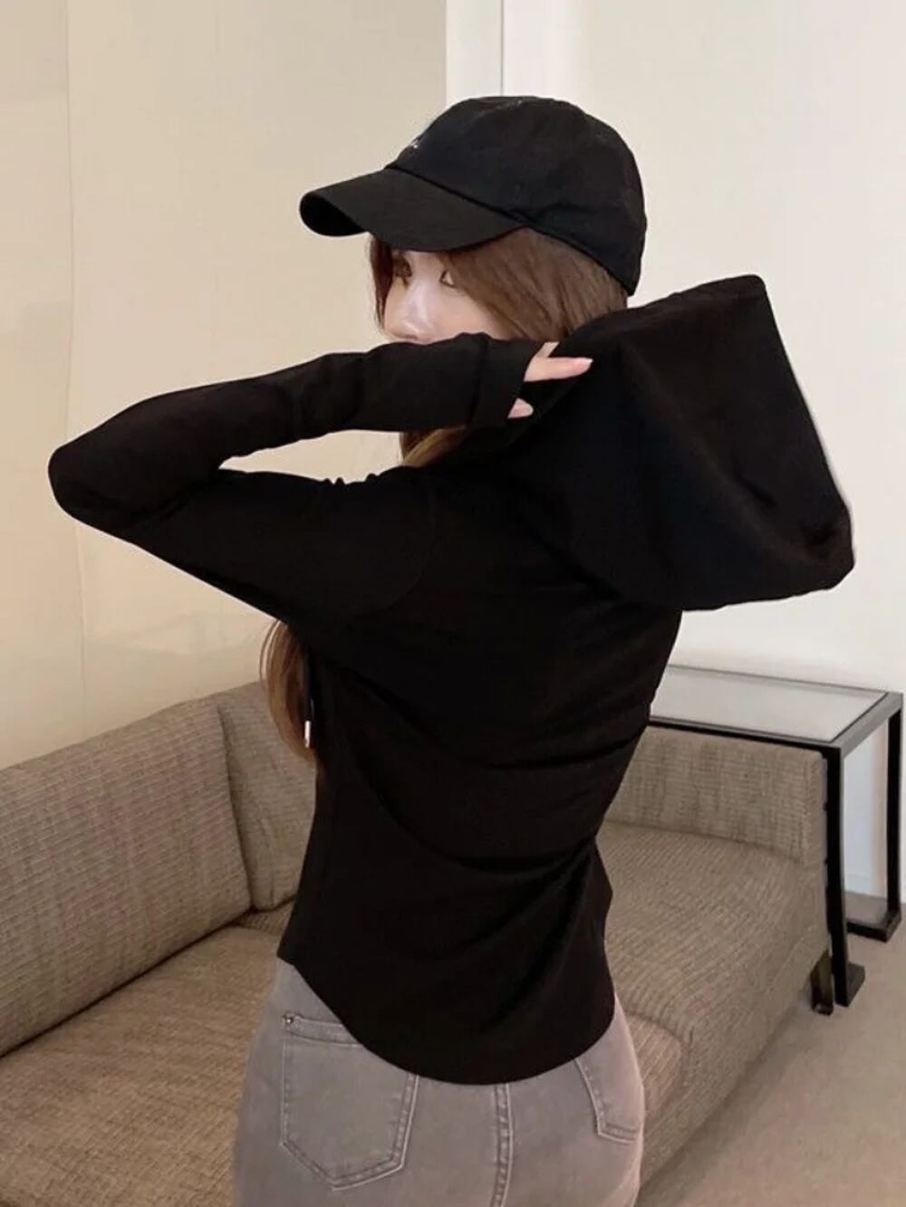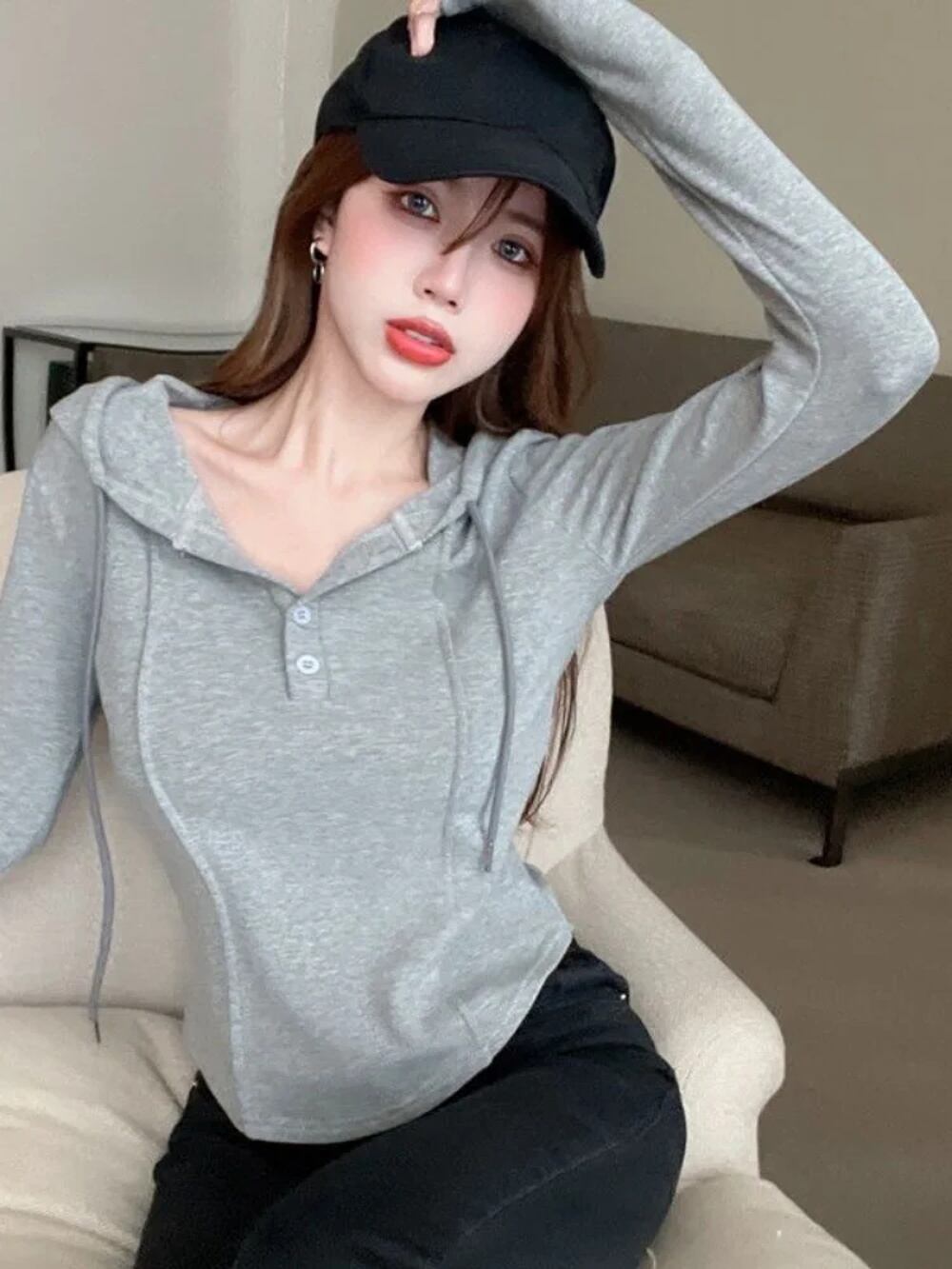 Deeptown-女性用ショートフーディ,韓国スタイル,スリム,プルオーバー,kpop,無地,フード付き,白い長袖,秋のファッション,2022 T240926102749_01