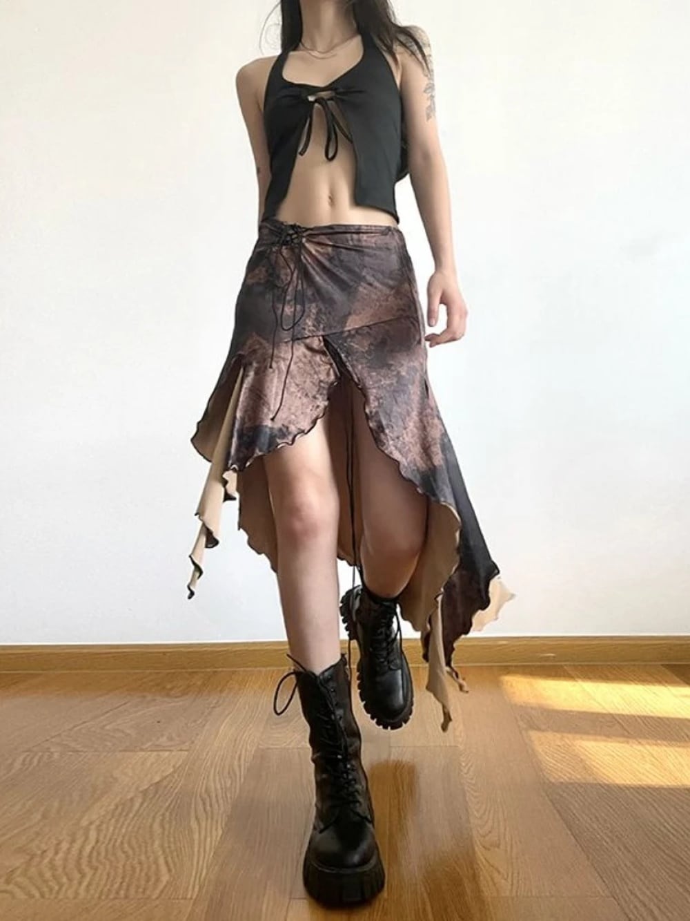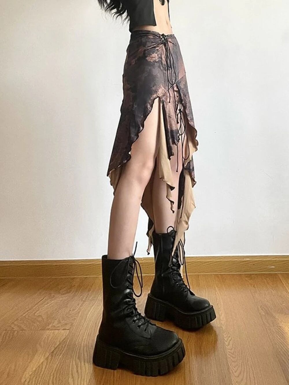 Houzhou-女性のヴィンテージセクシーなストリートウェア、休暇スカート、アメリカのレトロなハラジュク不規則なフリルデザイン、包帯スカート、夏、2024 T240926102756_01