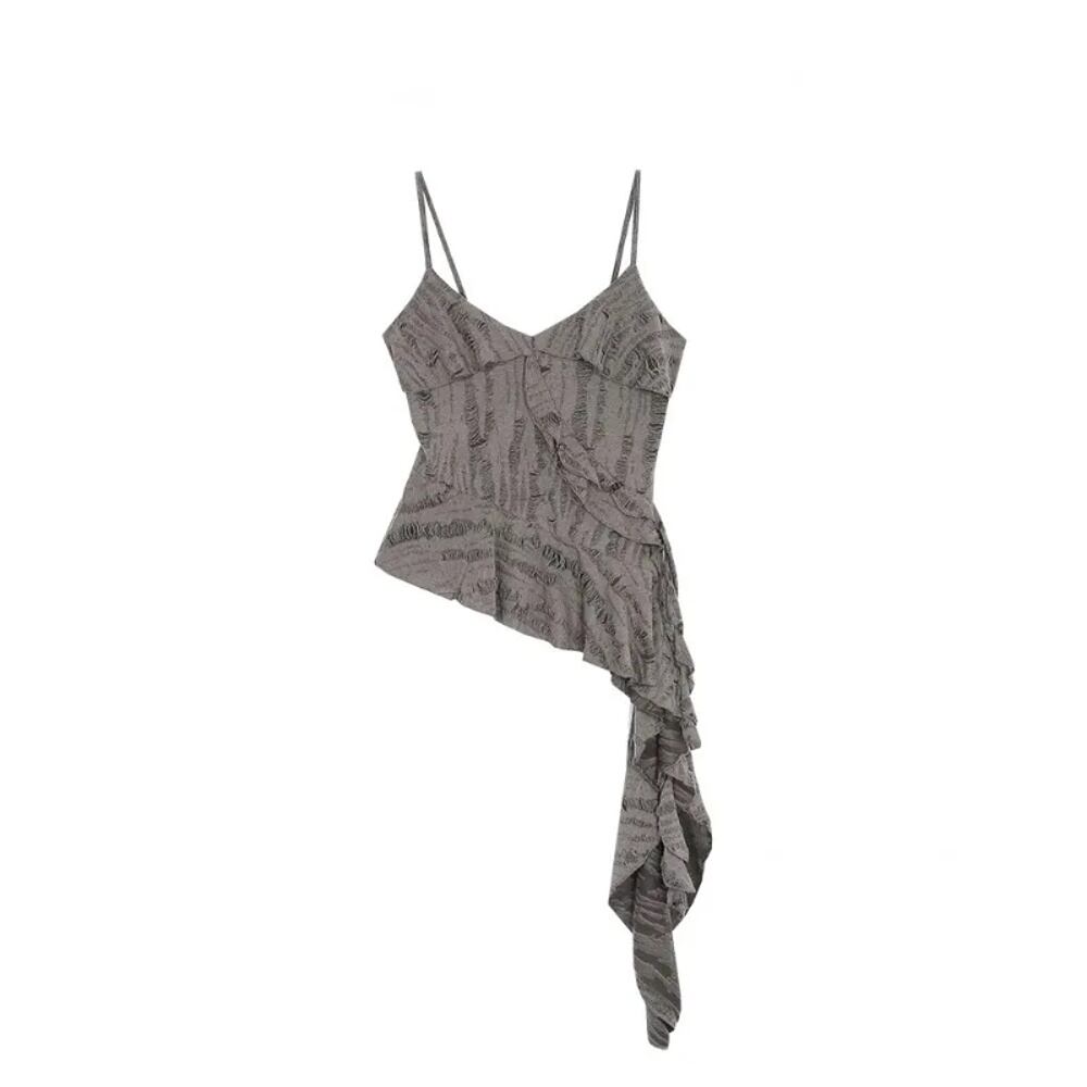 Deeptown-女性の非対称タンクトップ、セクシーなフリルキャミソール、黒の女性のストリートウェア、フェアリーコアエステティック、y2k、パンクスタイル、グランジ T240926102807_03