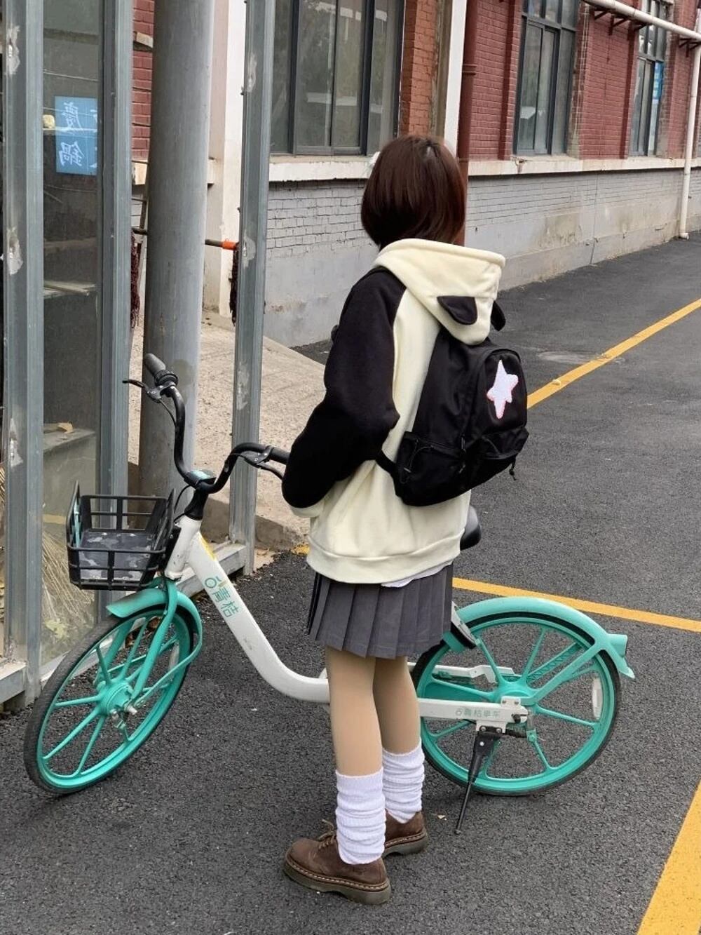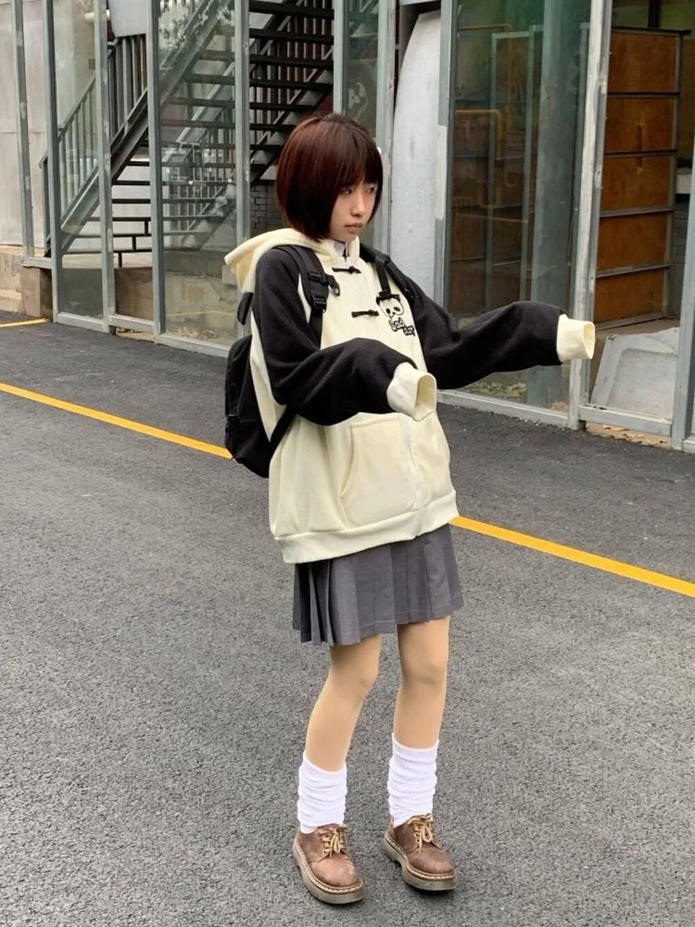 Houzhou-女性のカワイイパッチワークフーディー、漫画プリント特大フード付きスウェットシャツ、ソフトグリール、日本のファッションストリートウェア、原宿 T240926103023_01