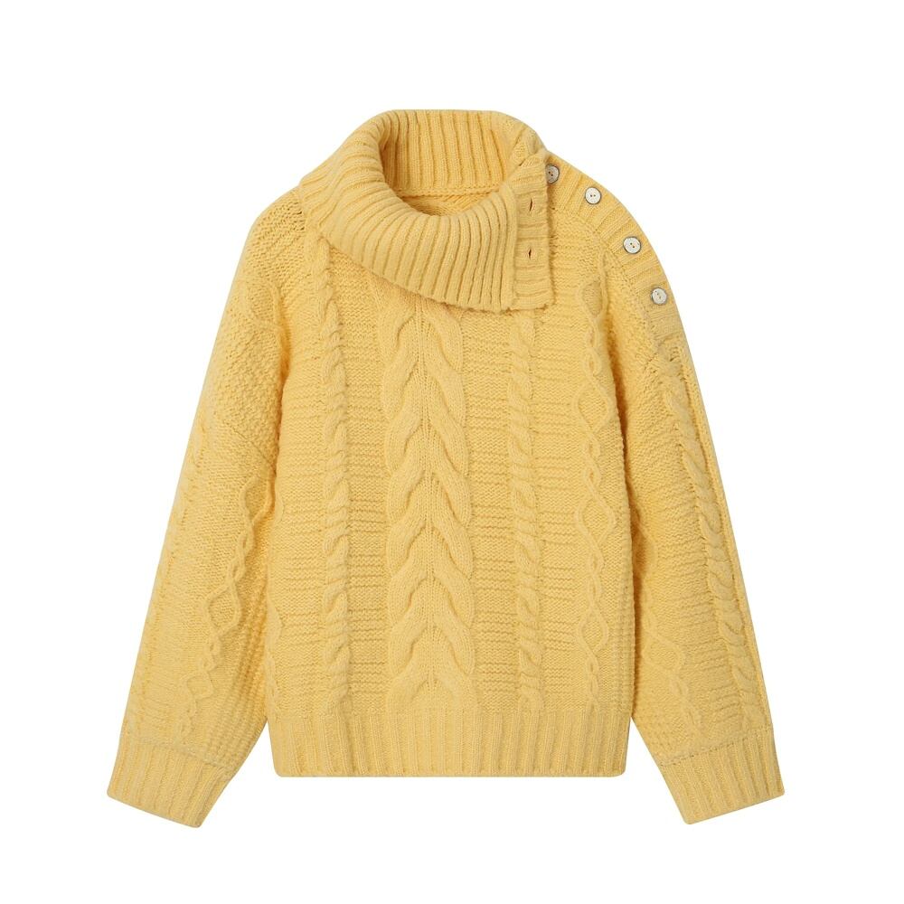 Deeptown-女性の韓国のファッションタートルネックイエローセーター、ヴィンテージツイストニット特大プルオーバー、長袖トップス、y2k、甘い T240926103113_01