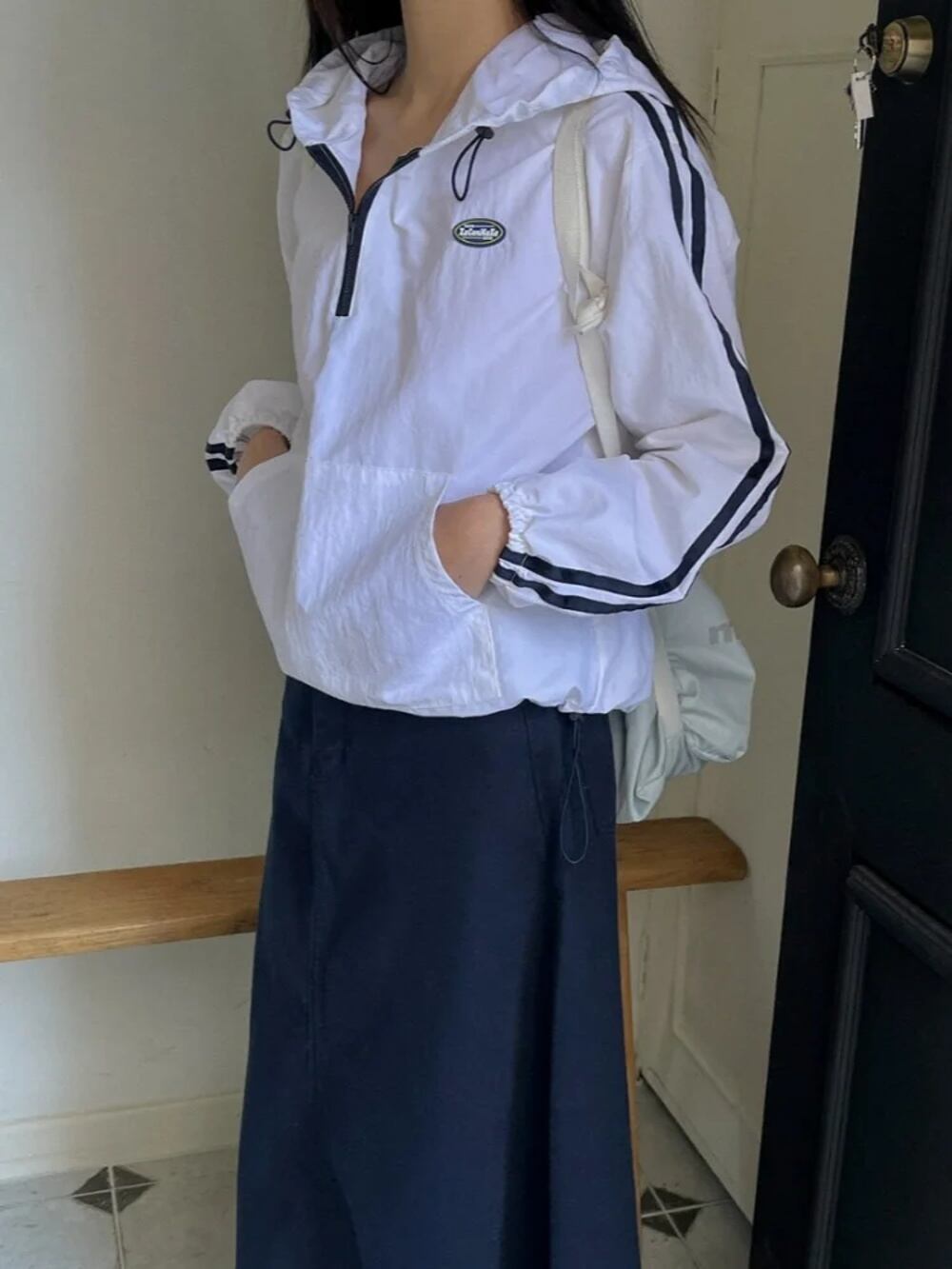 広州-女性のy2kヴィンテージストリートウェアパーカー、韓国スタイル、プレッピースタイル、ヒップホップストライプパッチワーク、ジッパーフード付きスウェットシャツ、2024 T240926103215_01