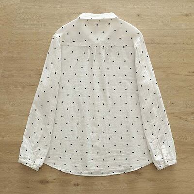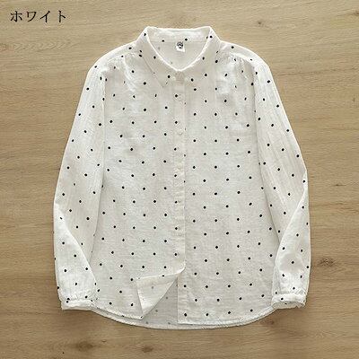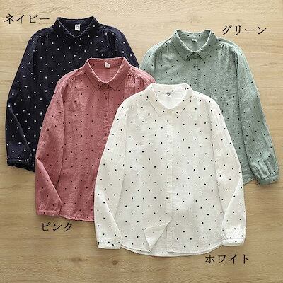 シャツ レディース 綿100 ドット柄 ガーゼ ダブルガーゼ ブラウス テールカット 折襟 トップス 長袖 ボタン付き 折り襟 カットソー 長袖シャツ レギュラーカラー チュニック 前開き 体型カバー