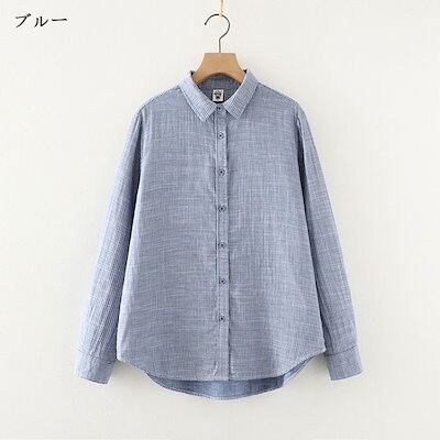ガーゼ シャツ 長袖 レディース 秋 ストライプ ガーゼシャツ ダブルガーゼブラウス 折襟 大きいサイズ シャツ チュニック 長そで 春夏 秋 体型カバー 綿 柔らかい コットン トップス ブラウス