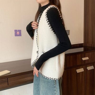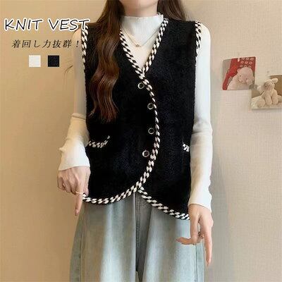 ニット ベスト Vネック レディース 大きいサイズ ノースリープ トップス 前開き 無地 カジュアル ゆったり 着痩せ 体型カバー 春 秋 冬 秋服 お洒落 コーデ 重ね着 レイヤード 着回し 通勤