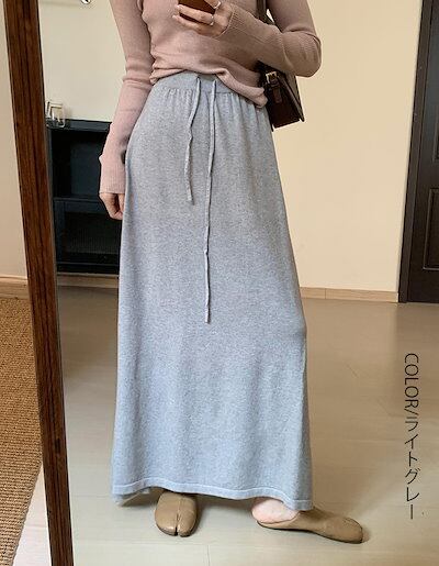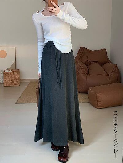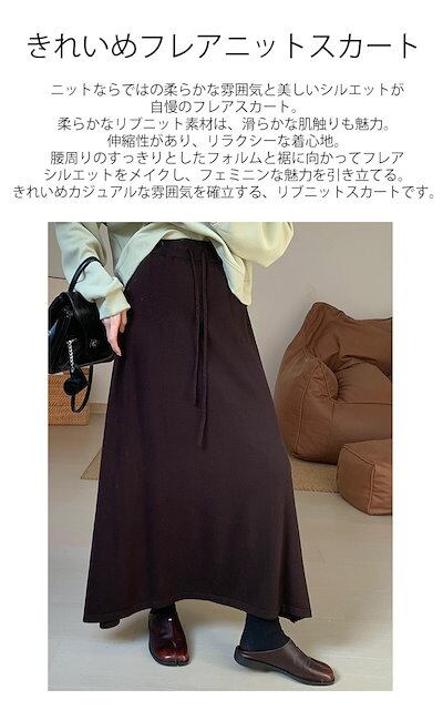 ニットスカート ニット スカート レディース ボトムス ロングスカート ゆったり フレアスカート ロング丈 ミモレ丈 ハイウエスト フレア 軽い きれいめ おしゃれ ロングニットスカート シンプル A